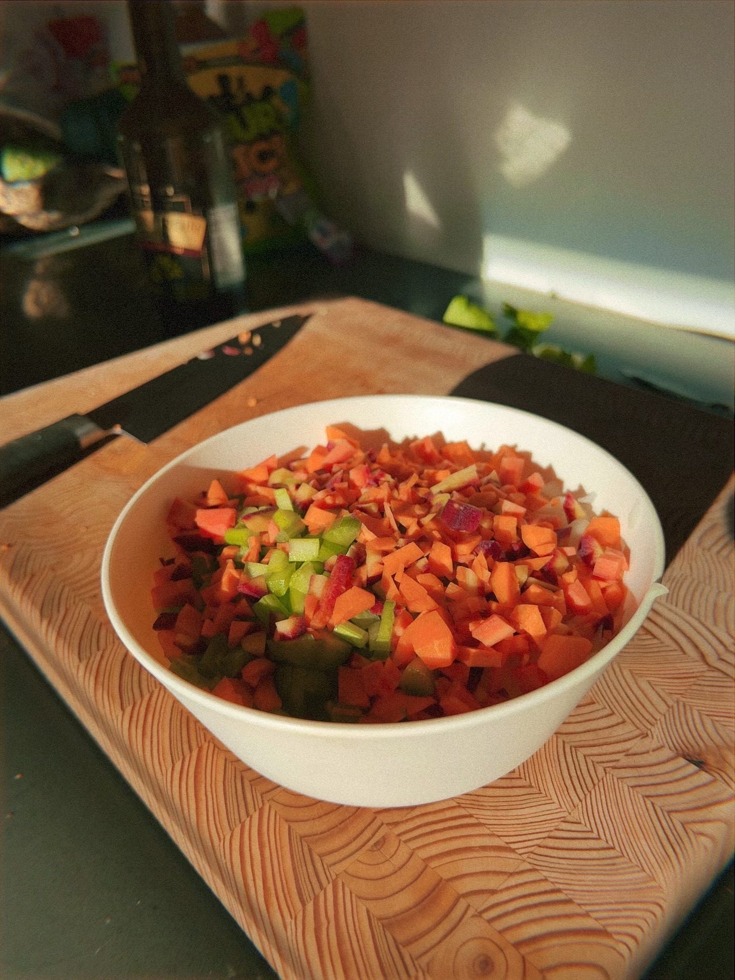so you’re anxious about cooking. about how high to turn the burner and when. what is a large onion. how many carrots in a half cup. what is a simmer. what is a fine dice. why doesn’t this taste good. how do i fix it.