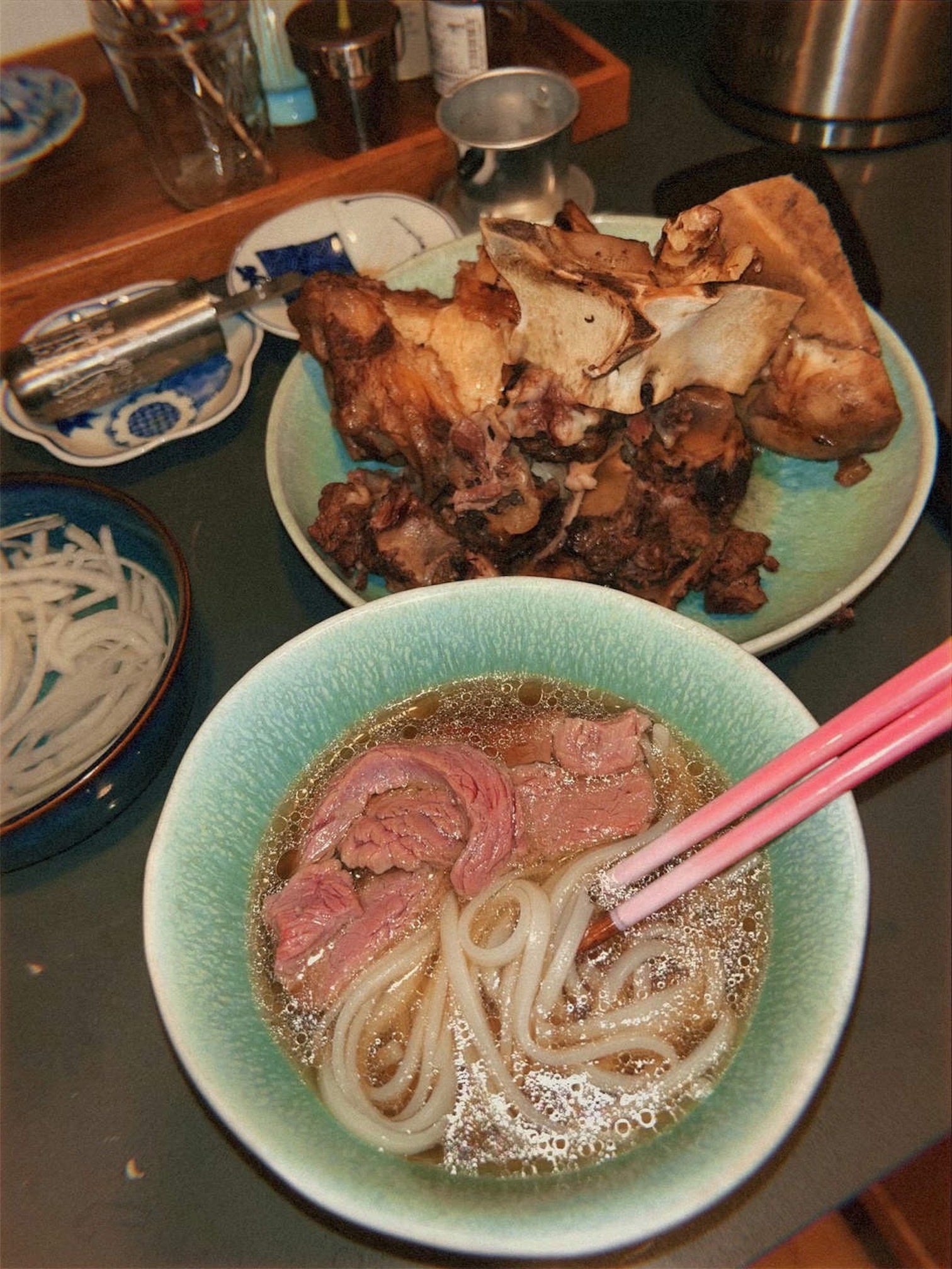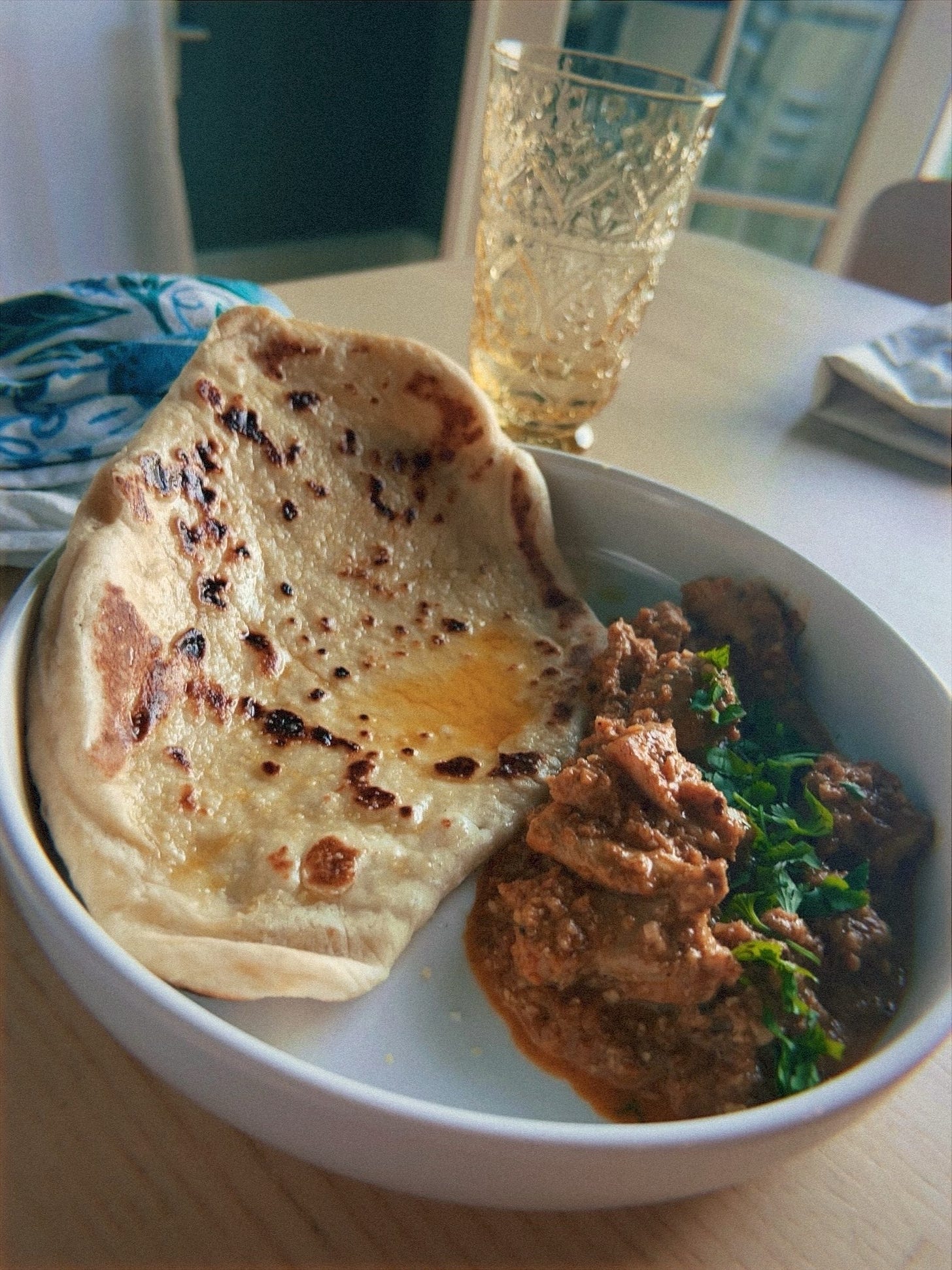 the oil in the pho broth tells me you made it so well wow!! and I love the awe in the photo of your wife and your butter chicken looks SO yummy. come to ny sometime, I'd love to make ya'll banh khot or banh xeo both dishes meant for your hands and the company of others