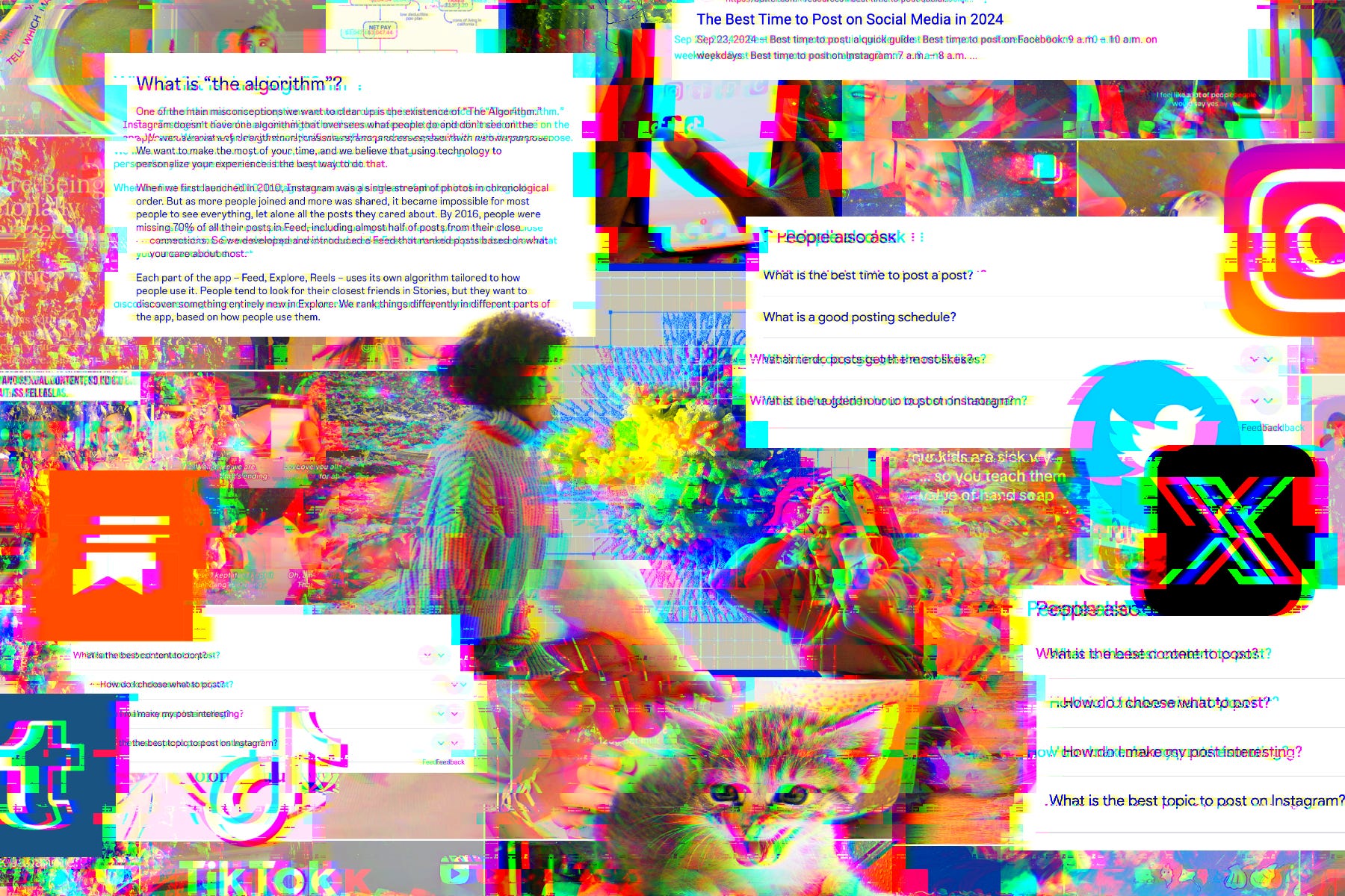 the algorithm is not for us. we find each other not through but in spite of it. it’s not even that great at its not-so-secret real job: getting us to buy stuff. so why do we care? why are there millions and millions of articles talking about how to work the algorithm, when to post and what to say and how to farm your life for content, the best way to create shiny, fast-paced, digestible content that tricks sticky sedentary scrolling brains into staying around?